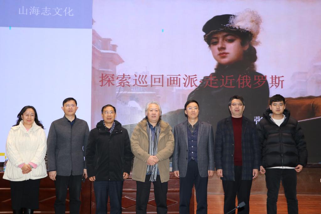主讲人张志烈,青岛理工大学教师、青岛美术家协会美术教育委员会副主任兼秘书长。在讲座中,张老师首先对什么是艺术、什么是文化进行了阐释。他从俄罗斯的文化讲起,深入浅出地讲解了列宾的《国务会议》《伊凡雷帝杀子》等著名布面油画,让师生领略到了俄罗斯的艺术与其潜在文化的内涵。张老师通过介绍艺术和文化的定义和内涵,打破边界、搭建艺术与文化、生活交融的桥梁的重要性,让现场师生对艺术与文化有了清晰的认识与感受。