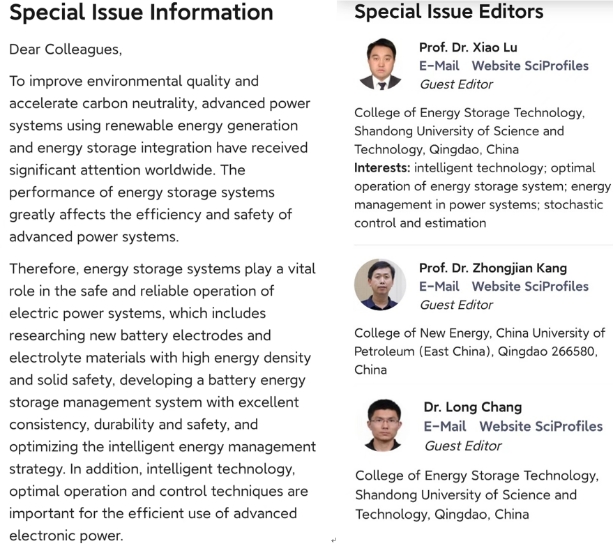 点击:近日,公司卢晓教授应国际期刊《Energies》杂志邀请,担任该刊物的客座编辑,负责稿件征集和同行评议等事宜。根据当前国际储能技术的研究热点并结合公司研究方向及卢晓教授的研究领域,开设了“Intelligent Technology, and Optimal Operation of Energy Storage System”主题,并在世界范围内向相关研究人员征集符合该主题的研究论文和综述。这将对进一步提升公司在储能技术、储能系统优化运行、智能控制技术等领域的国际影响力产生积极作用。