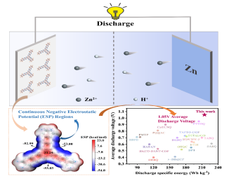 点击:有机电极材料凭借理论容量高、结构可精准调控以及可持续等显著优势,成为未来商用水系电池极具潜力的备选材料。然而,当前应用于水系锌离子电池的N型有机物却面临性能瓶颈:工作电压普遍低于1V,放电比能量也相对较低,通常不足200 Wh kg−1。这一状况极大地制约了电池能量密度的提高,也严重阻碍了其实际场景中的推广应用。因此,如何设计研发具备高放电电压和高放电比能量的N型有机电极材料,已然成为该领域亟待攻克的关键难题。